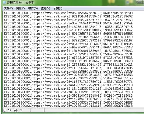 如下圖說是,是要使用的txt文本數據,第一列為大標簽內容,第二列為二維碼內容,第三列為防偽碼。(數據為隨機生成,只為演示使用)