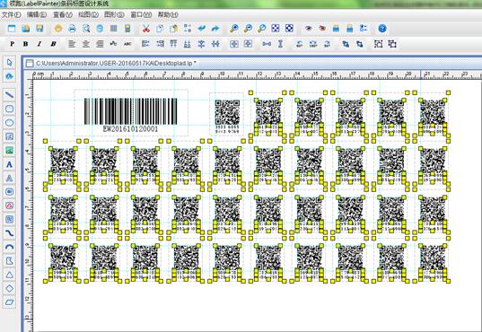 將二維碼、防偽碼、小矩形框全選,以這個3個對象為基本參照,批量生成格式相同,內容不同的小標簽。
