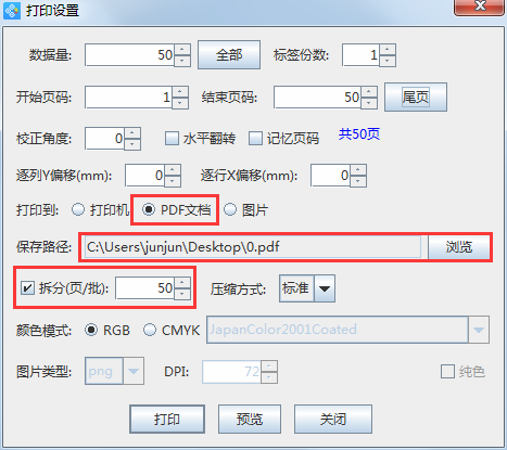 第二種是直接用中瑯軟件將制作出來的文檔導出至多個PDF文件,實現方法就是在打印設置頁面中,選擇打印到“PDF文檔”,設置好保存路徑之后,勾選“拆分(頁/批)”前的對號,并輸入一個文件要包含的頁數,然后打印就可以了。