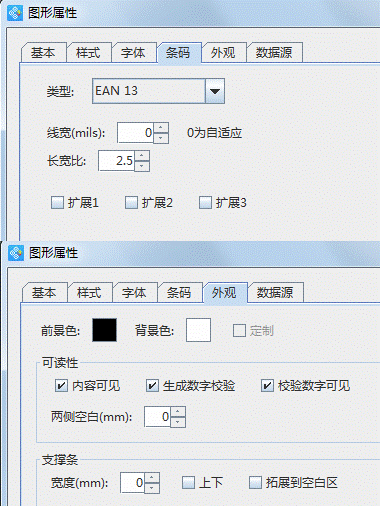 在“條碼”選項中,選擇條碼類型為“EAN-13”,在“外觀”選項中,在“生成數字校驗”前打上對勾,在“數據源”選項中,先點擊減號按鈕,刪除默認數據后,再點擊加號按鈕,在彈出的輸入框中,輸入商品條碼的12位數據內容,再加上軟件計算生成的數字校驗位,就是13位了,點擊確定,展現出來的便是EAN-13條碼了。